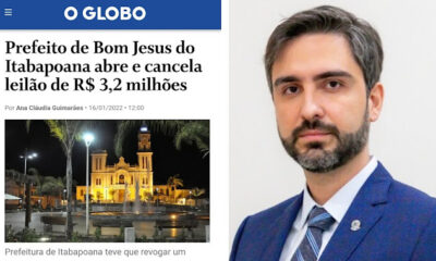 O prefeito de Bom Jesus do Itabapoana, Paulo Sérgio Travassos do Carmo Cyrillo, anulou um pregão eletrônico estimado em R$ 3,2 milhões que previa a contratação de estruturas...